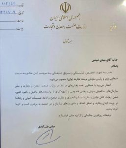 ضیغمی، معاون وزیر و رئیس سازمان توسعه تجارت ایران شد